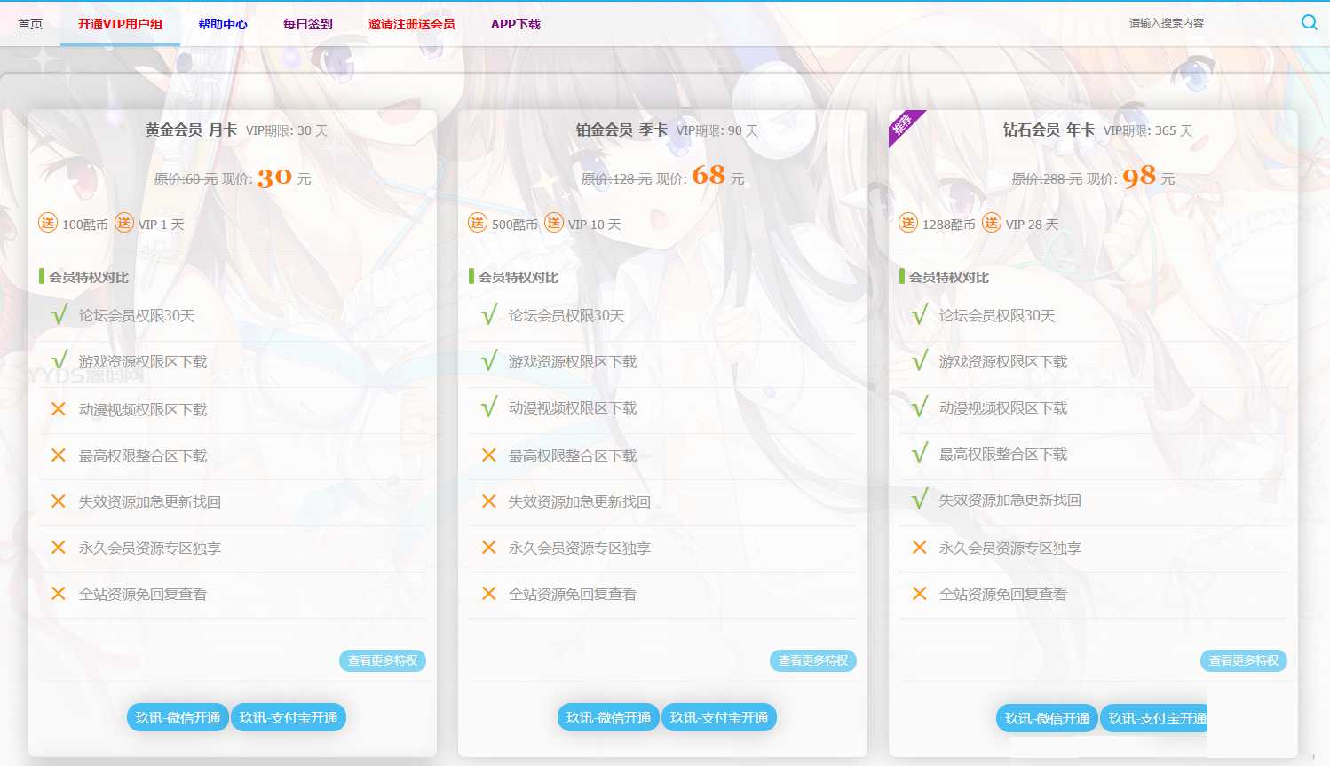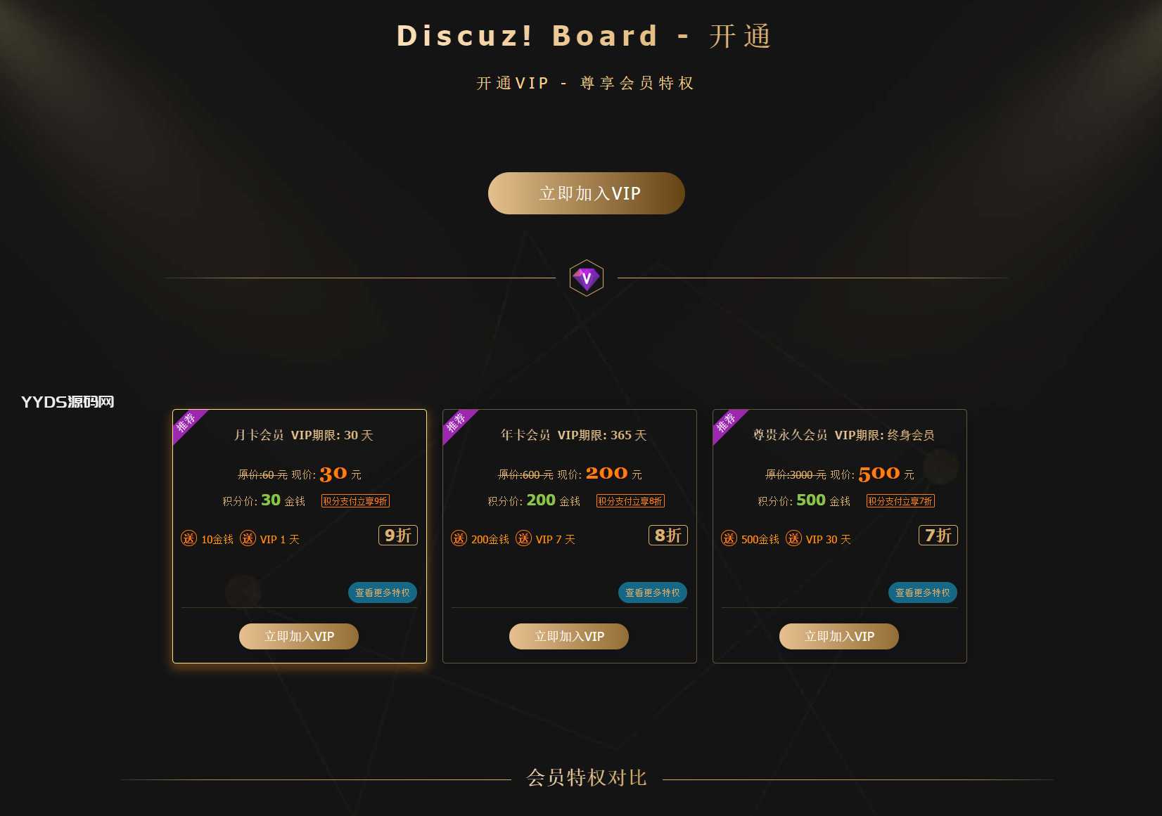 3.支持PC端与手机端购买用户组、同时支持积分开通VIP;