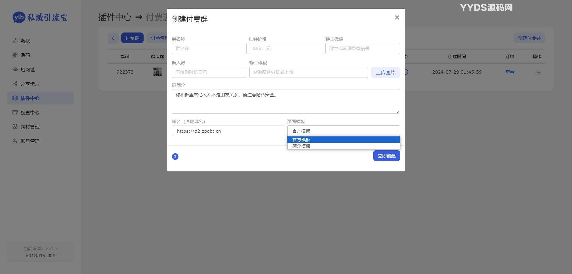当前位置: 首页模块插件其他框架正文 简介: 市场价值99的likeyun付费进群插件 这款是引流宝的付费插件 要搭配引流宝使用 多模版 最近发现好多人再倒卖大佬的付费插件 为了减少这种情况,在征得大佬的同意下决定免费发出来 此版本是付费进群最新1.0版本 不提供后续更新服务,有能力的还是建议支持正版 服务周到安全有保障 图片: likeyun付费进群插件引流宝插件网站插件 收藏 链接