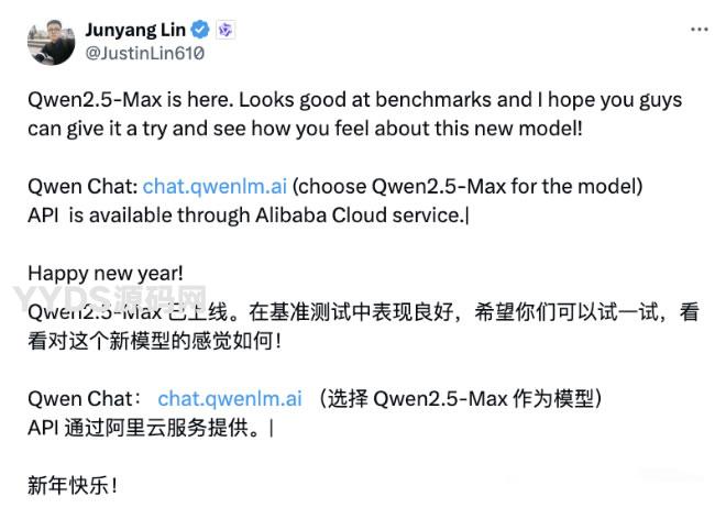 Qwen2.5-Max一发布,高级算法专家林俊旸就发了个圈: