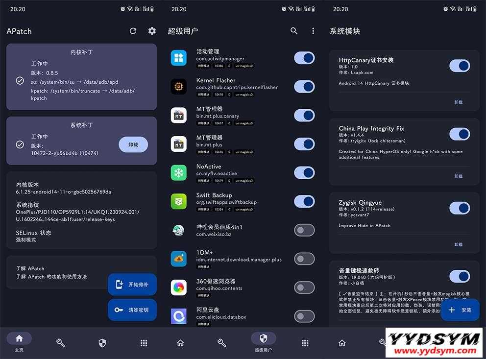 APatch是一种类似于Magisk或KernelSU的root解决方案,但APatch提供更多功能。 APatch分别结合了Magisk方便易用的通过boot.img安装的方法,和KernelSU强大的内核修补能力。