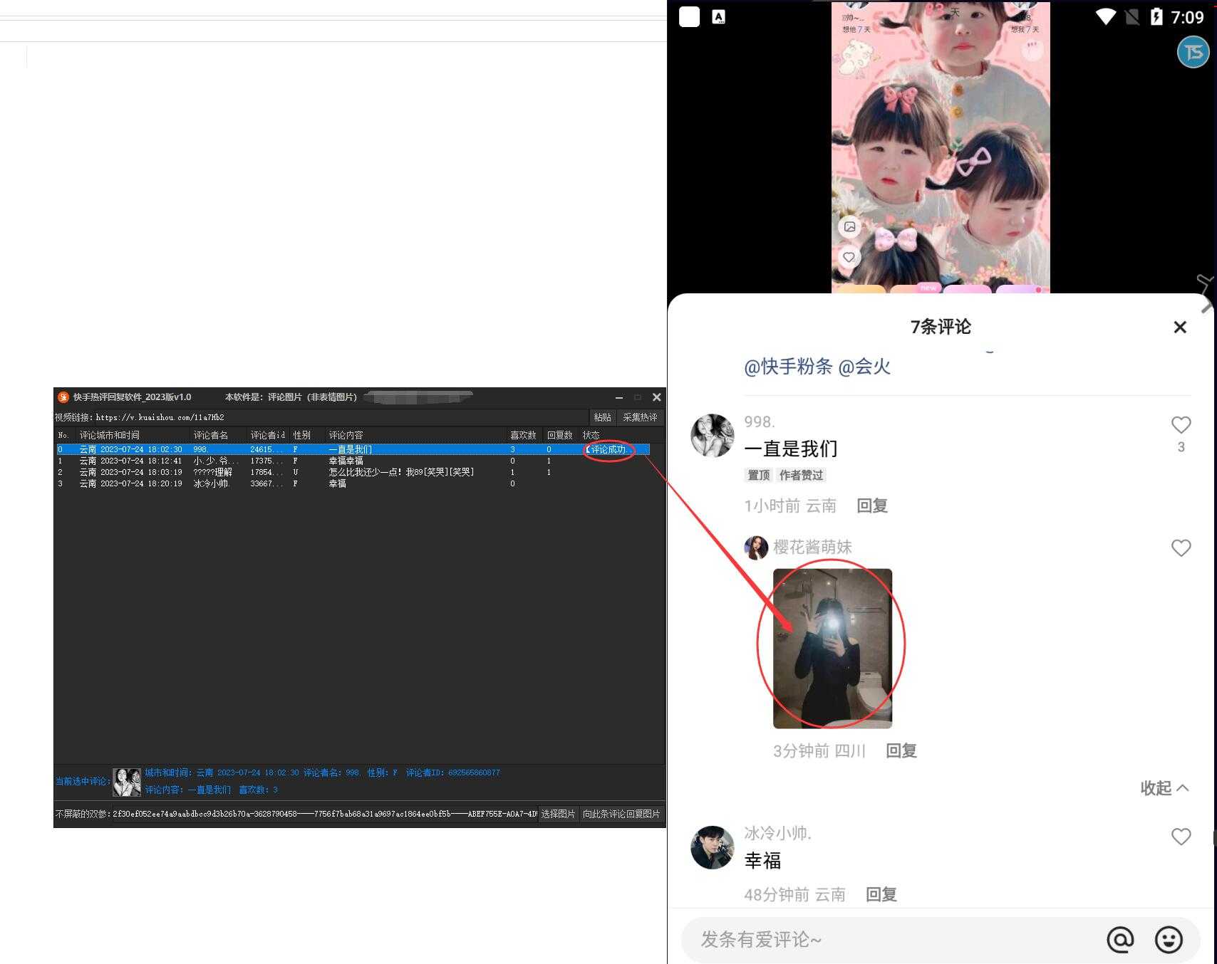 当前位置: 首页软件工具电脑软件正文 简介: 快手热评回复软件_2023版v1.0 这是协议软件,不是脚本,模拟器截图是为了展示评论成功 热评回复图片[非表情图片],评论后查看是否屏蔽 要在快手11.0版本以上才能显示评论的图片, 如果评论不显示 说你双参问题,需要换双参! 图片: 快手热评 收藏 链接