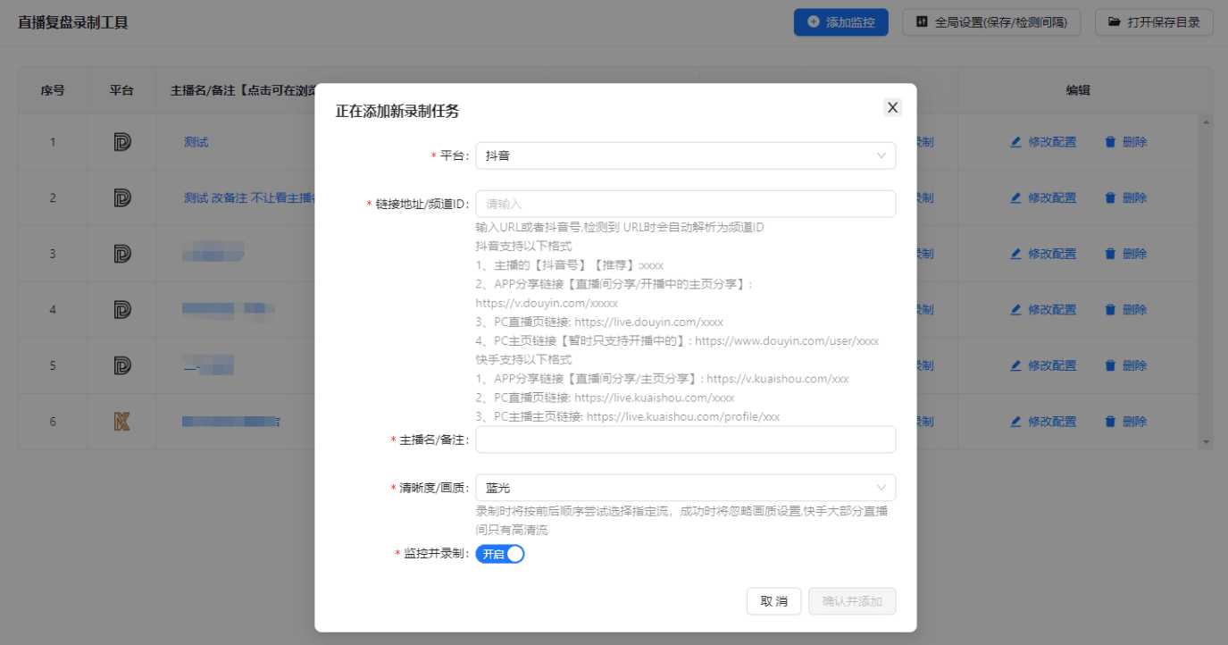 直播复盘录制工具基于 Electron 的多平台直播自动录制软件 支持抖音/快手 多链接形式
