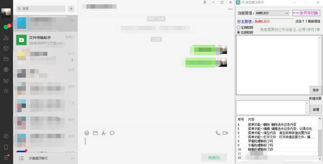 当前位置: 首页软件工具电脑软件正文 简介: 这是一款支持微信多开可切换,支持窗口左右吸附, 支持快捷回复的小公举,适用于做客服,做微商销售的朋友, 方便管理微信好友,大大提高工作效率。 图片: pc微信 收藏 链接