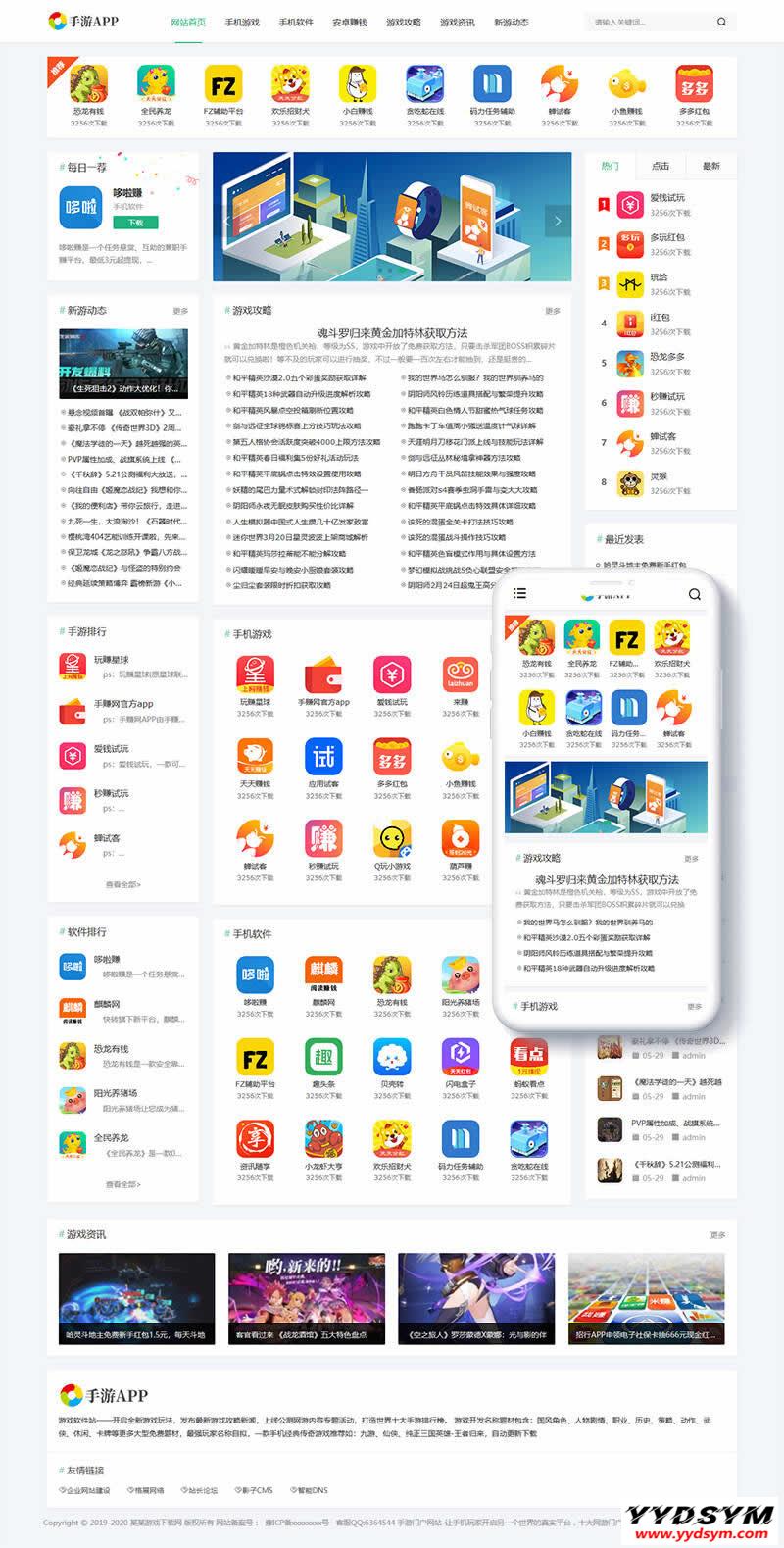 手机软件APP下载类网站Pbootcms模板 游戏软件应用网站源码 模板自适应手机端