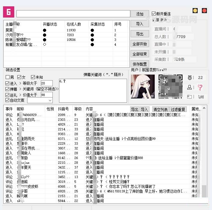 资源介绍 抖音弹幕关键词采集工具源码(支持多主播开播检测) 预览截图