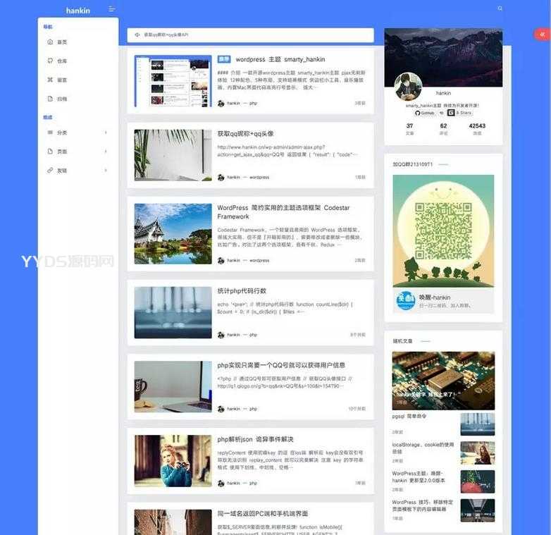 WordPress主题模板Hankin v2.0.1博客简洁蓝白色