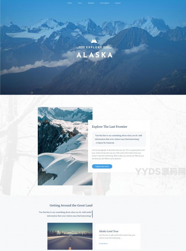 资源介绍 阿拉斯加自然景点旅行网站模板 预览截图